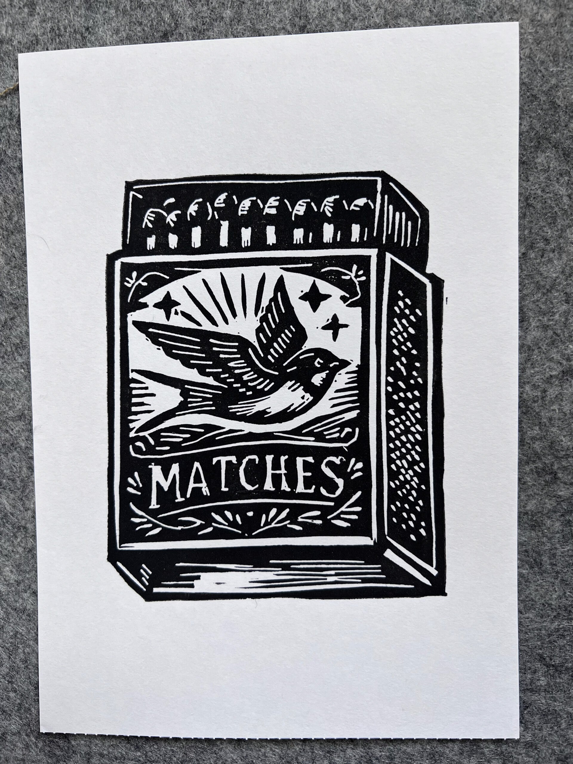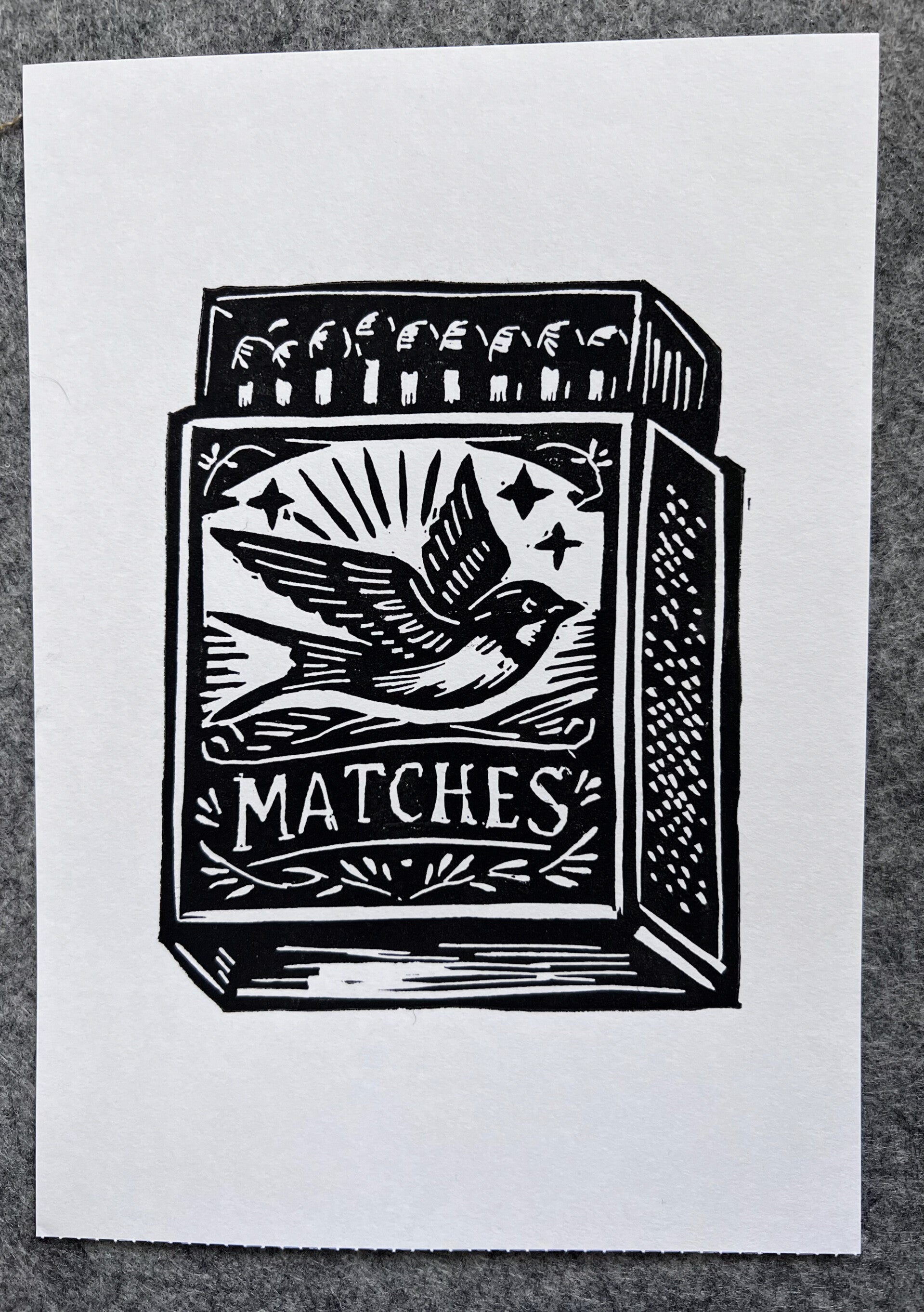 Linoprint Zwaluw lucifers