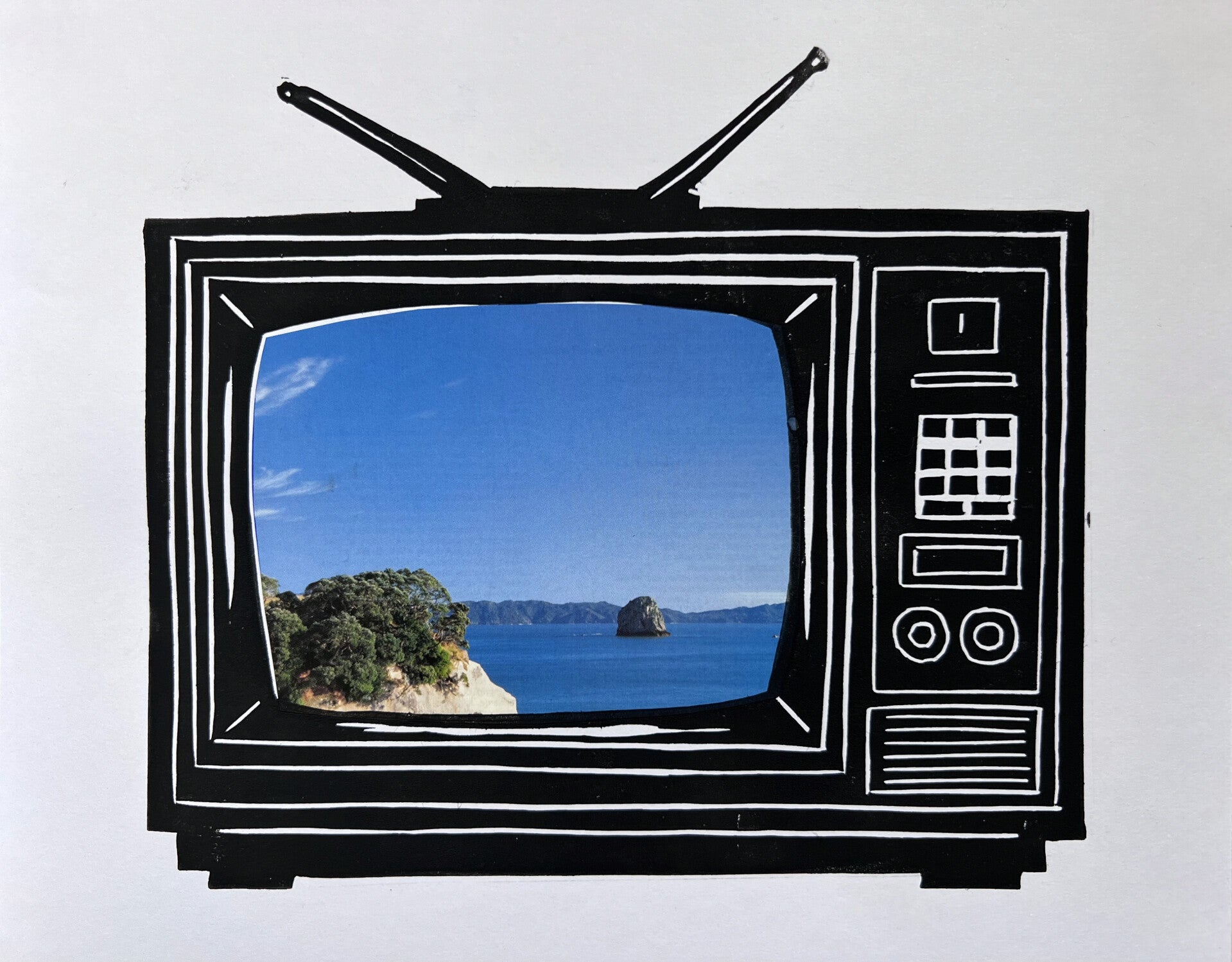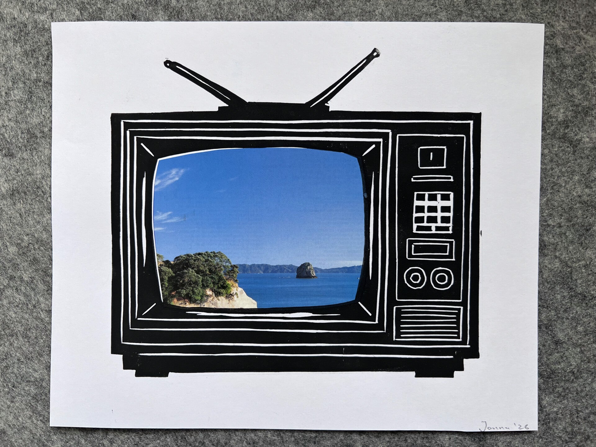 Met de handgesneden en hand afgedrukte linosnede "TV met uitzicht". Let op komt zonder lijst en/of passe partout! Alle linosnedes zijn door mij met de hand gemaakt en met de hand geprint. Handgedrukte linosnedes kunnen van print tot print variëren. Bekijk de foto's goed voor de details en het handgemaakte karakter. De linosnedes zijn afgedrukt met block printing inkt op waterbasis. Alle lino's worden of zijn met de hand gesigneerd met potlood. Prijzen kunnen variëren vanwege het papier dat gebruikt is en de kwaliteit of complexiteit van de druk van de linosnede. Deze linosnede is gemaakt met Chine collé techniek waarbij papier wordt toegevoegd aan de print.