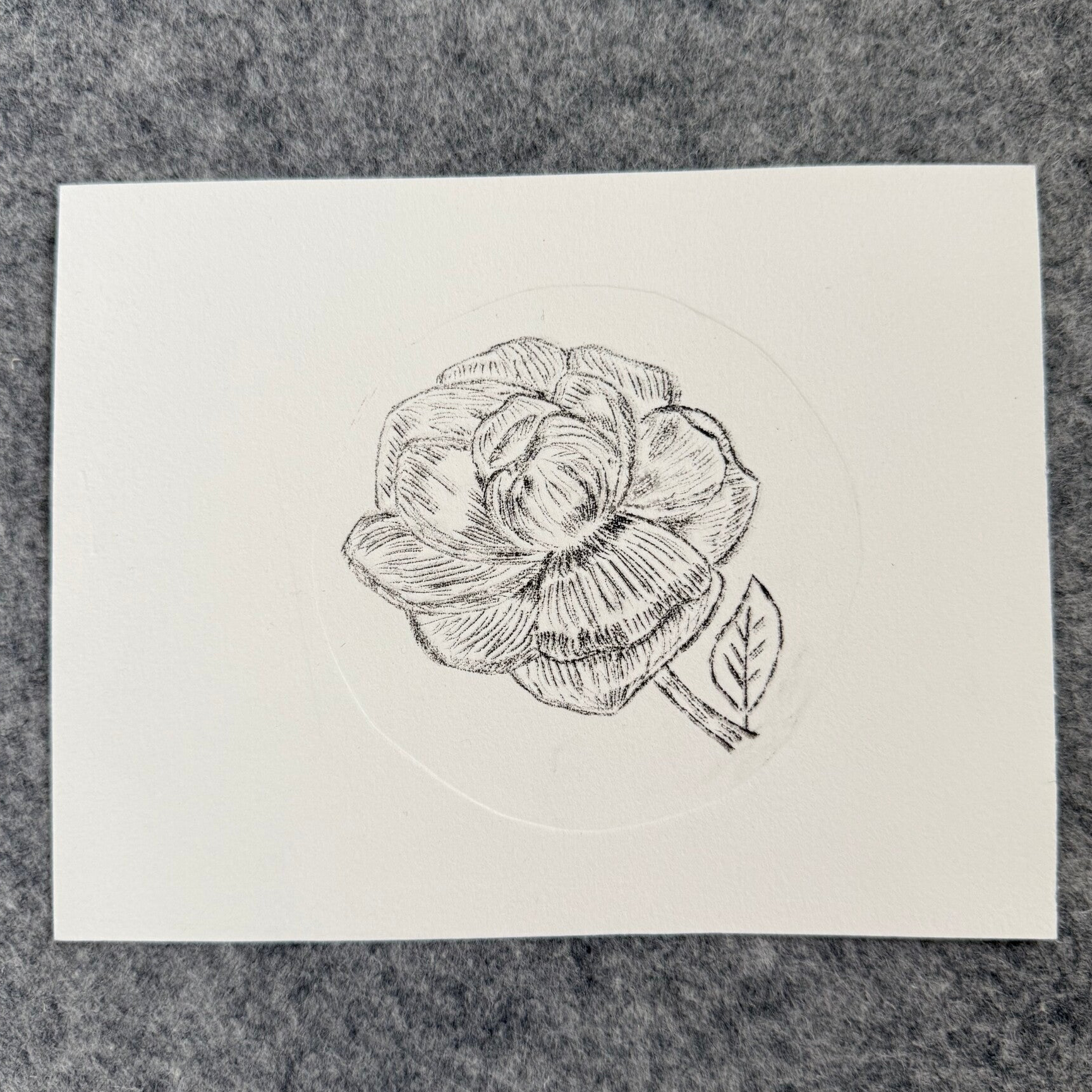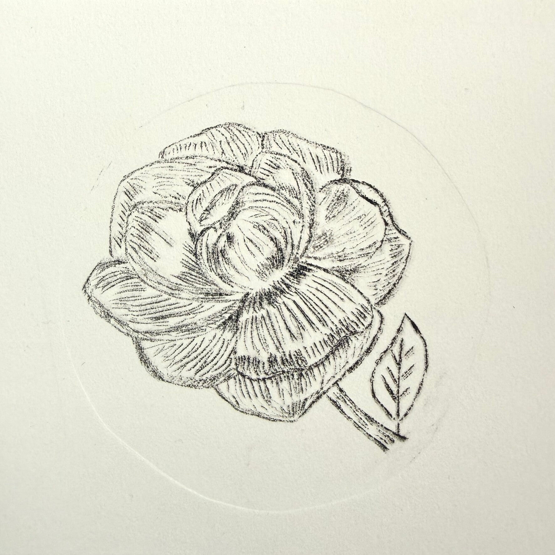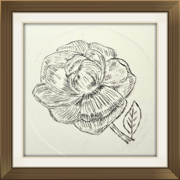Droge naald ets van een pioen roos. Let op komt zonder lijst of passe partout.
