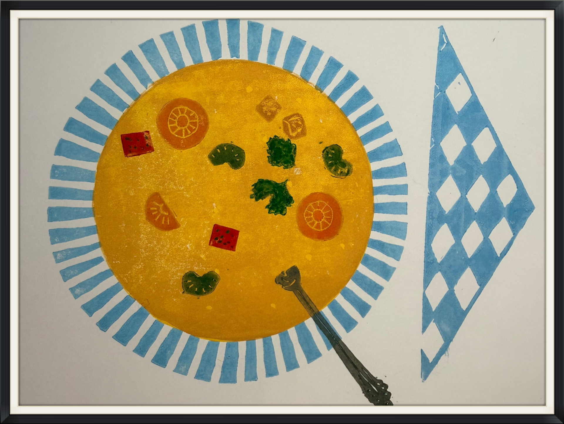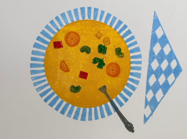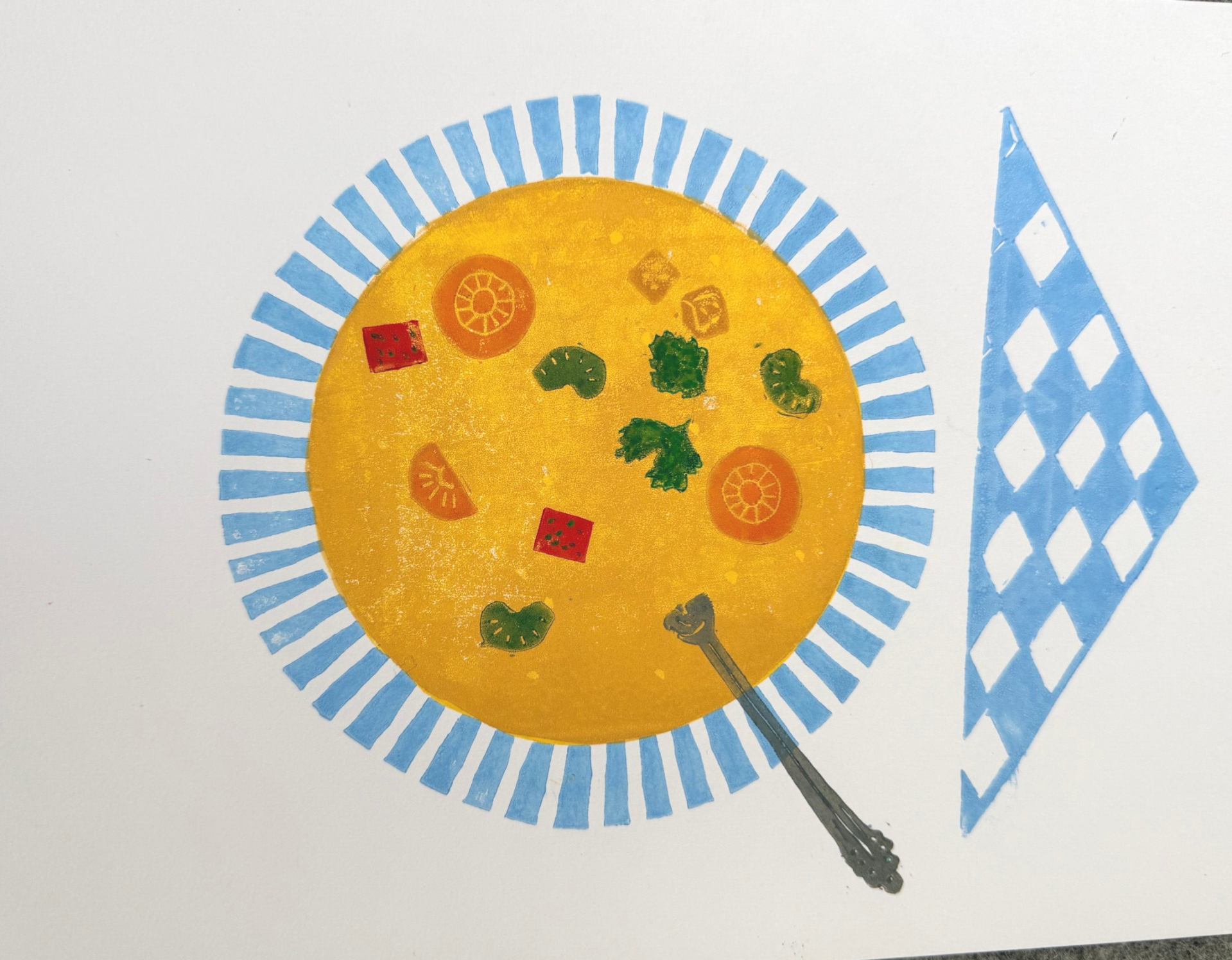Linoprint bord soep