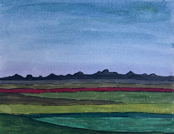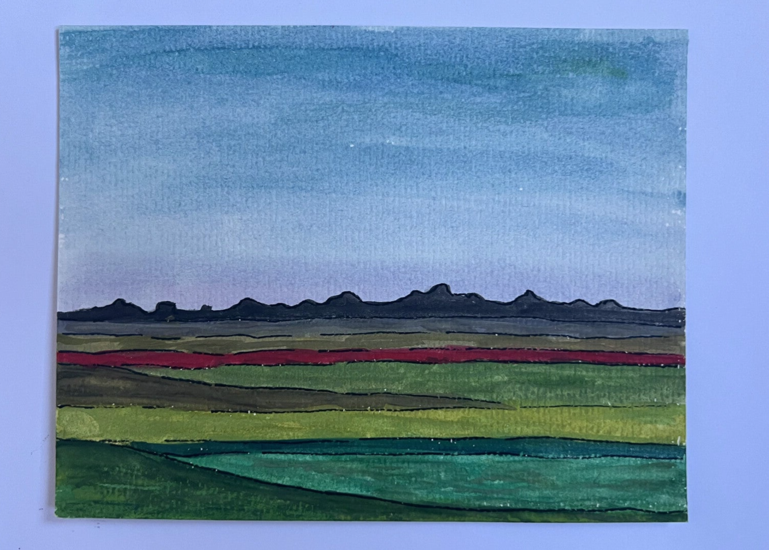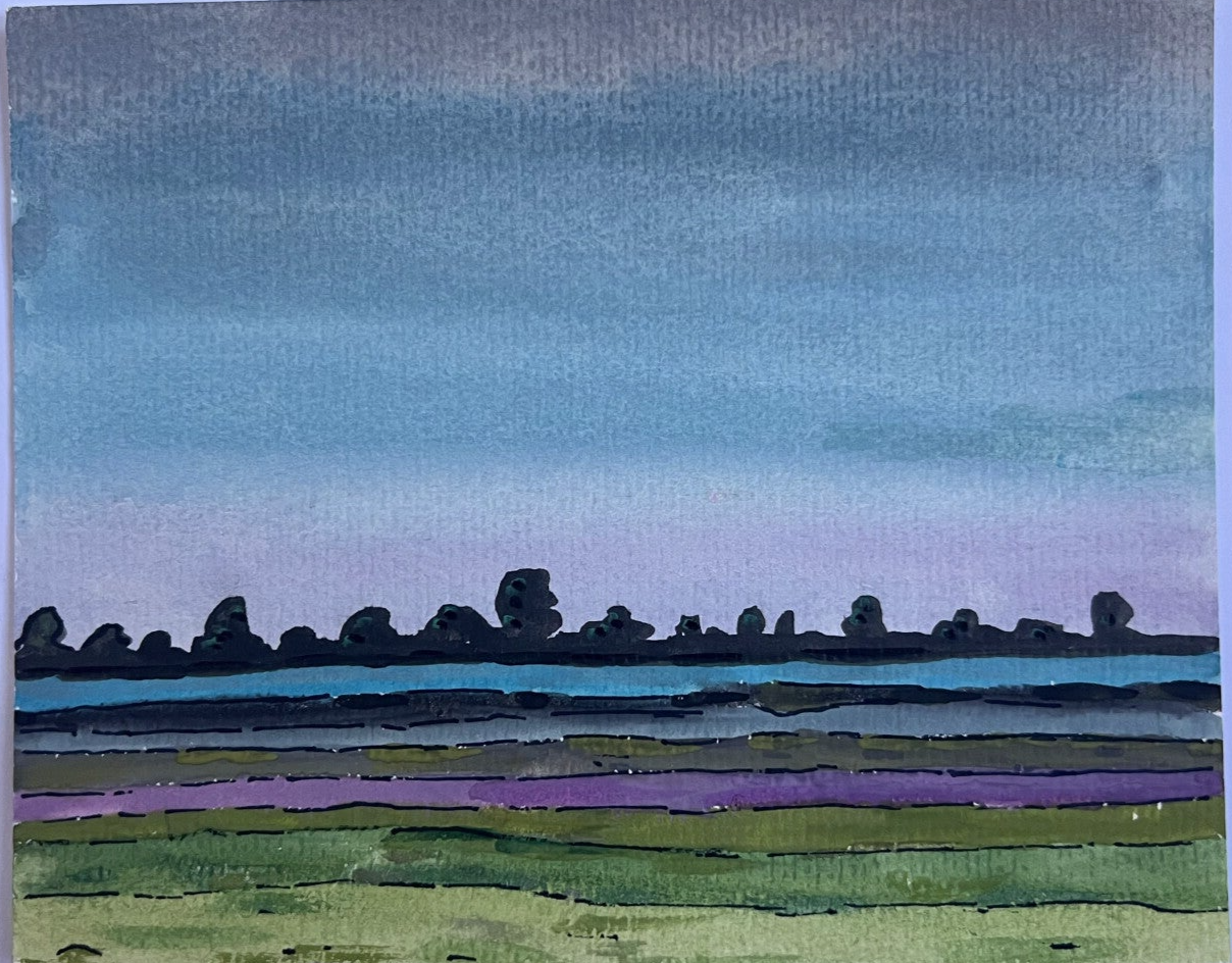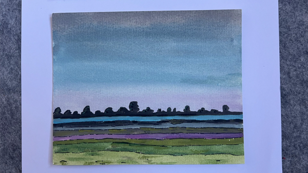 Set van twee aquarellen van een Frans landschap. Verfijnd met pendetails.