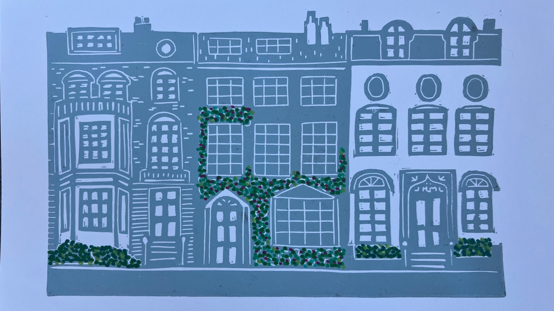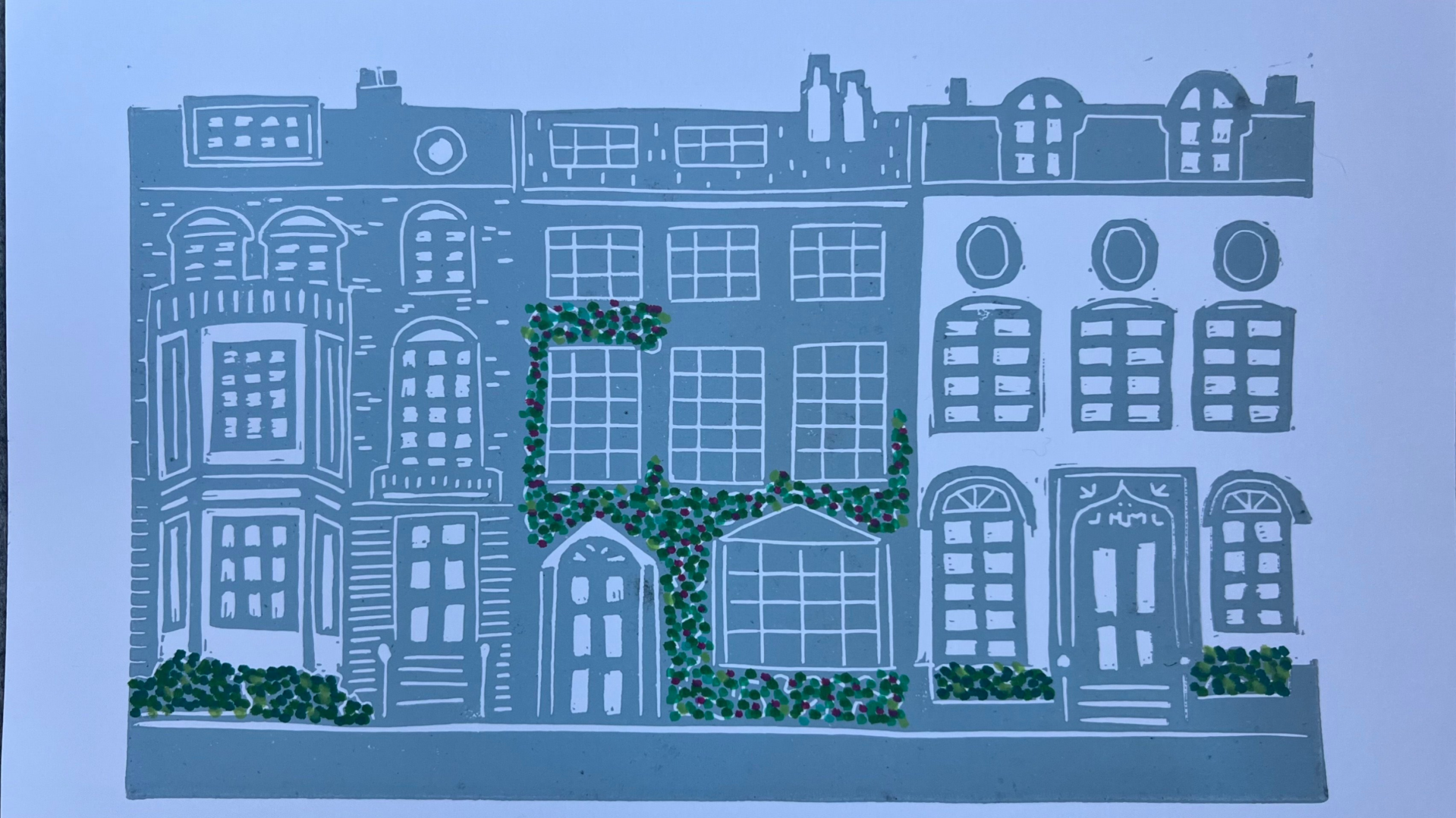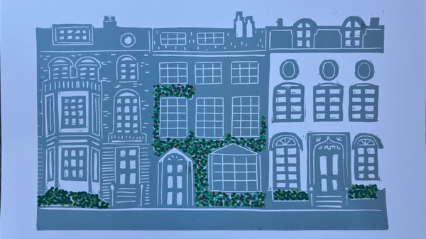 Linoprint Engelse rijtjeshuizen