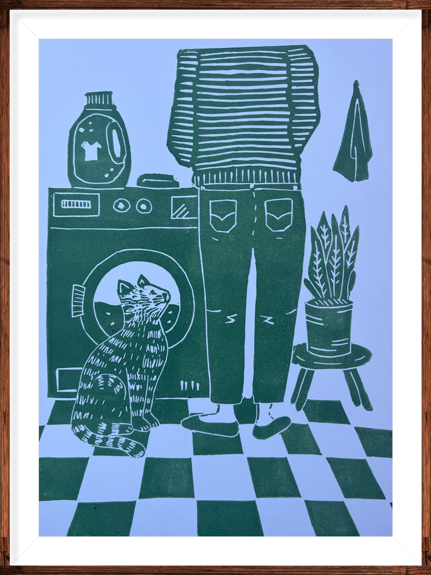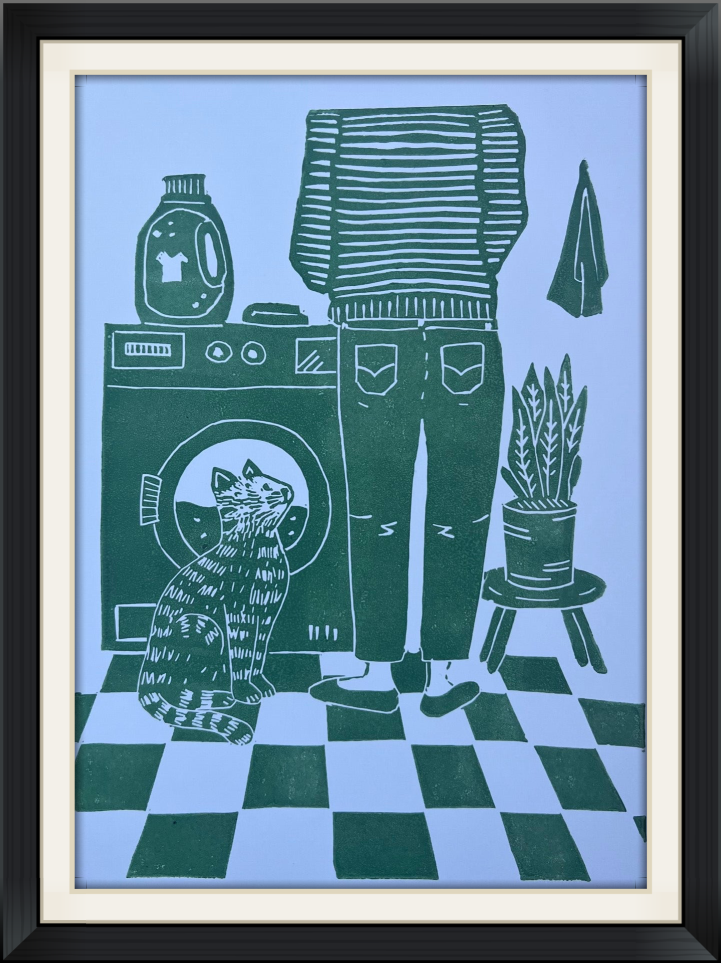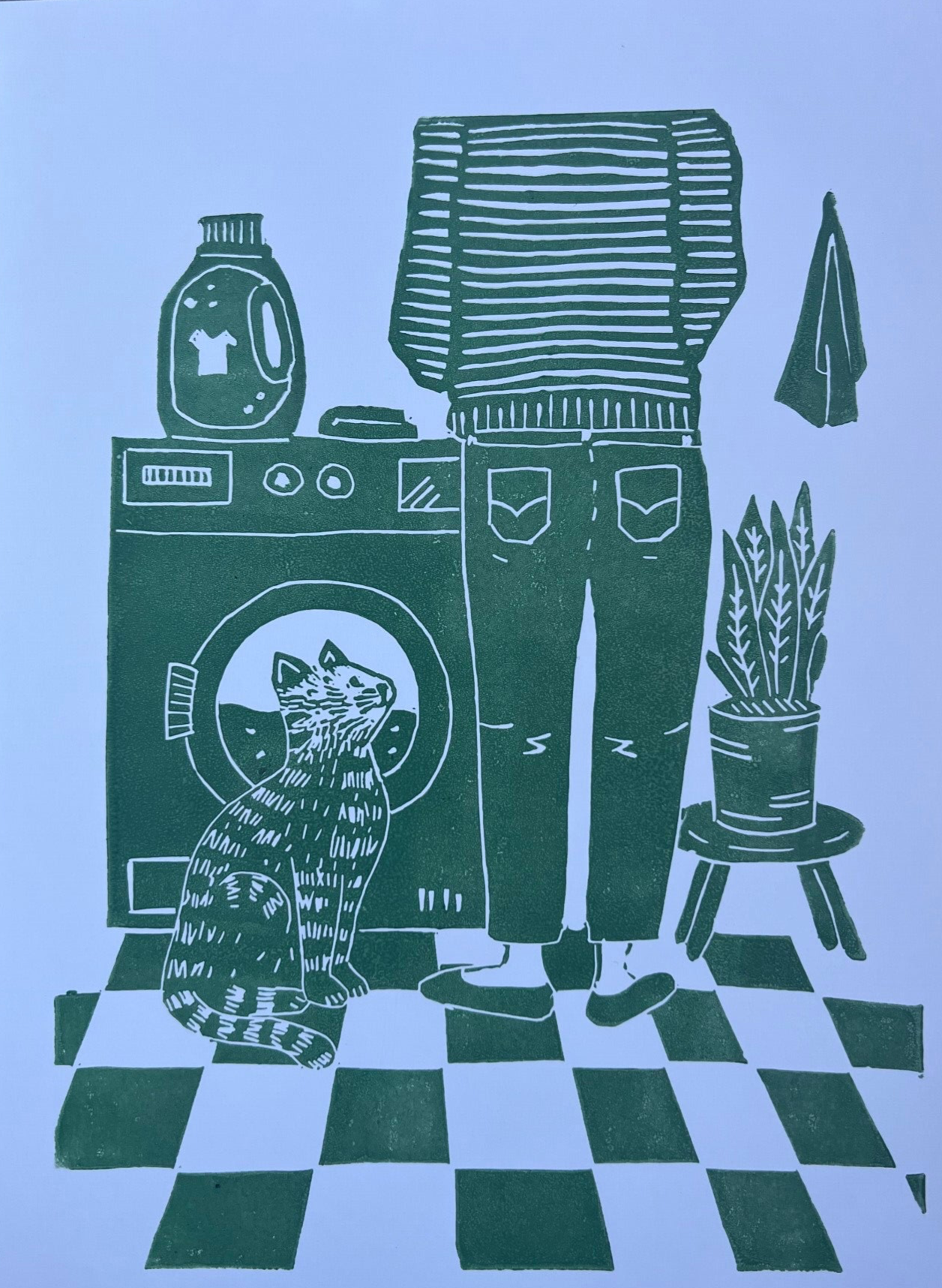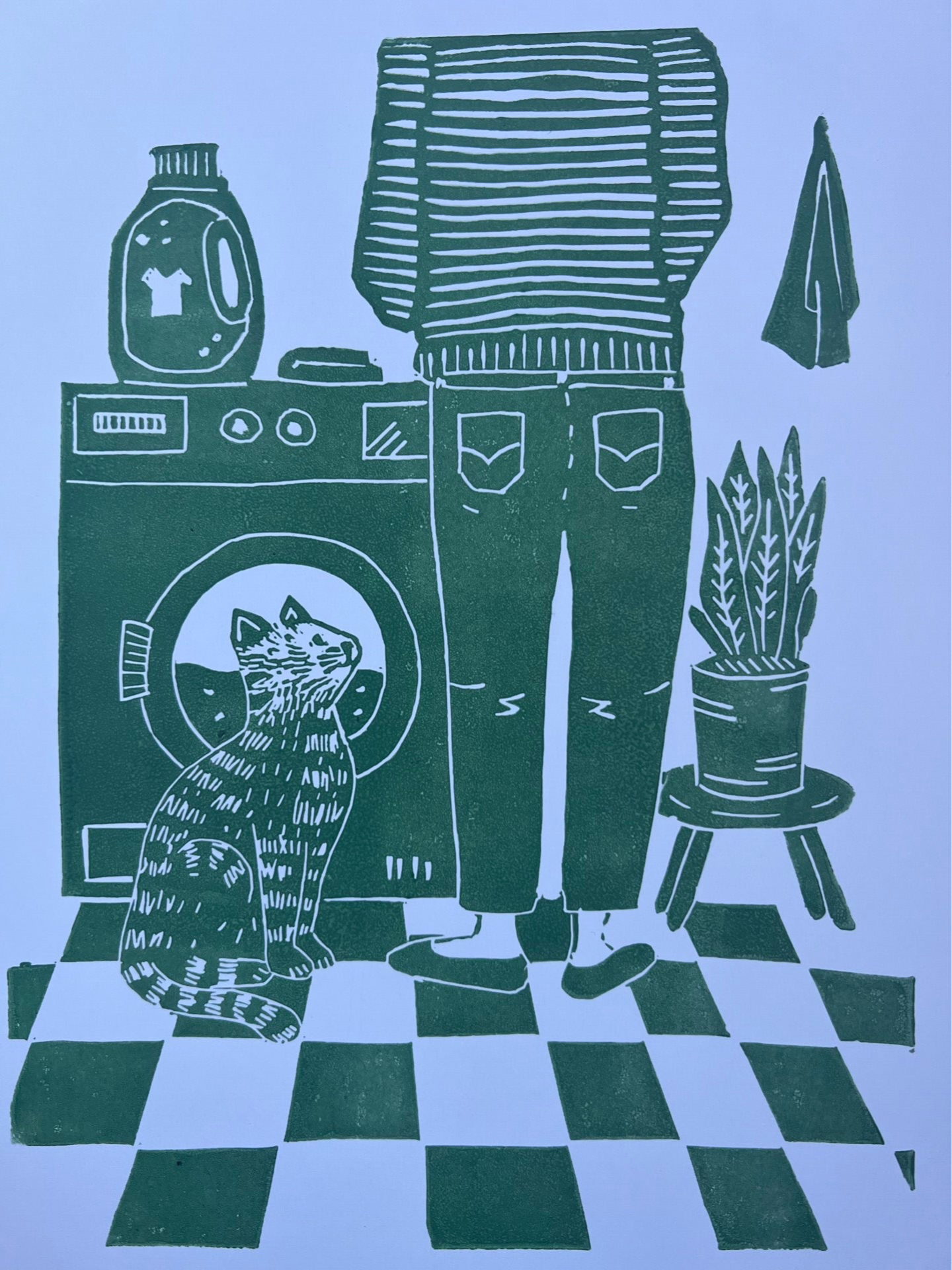 Linoprint “samen de was doen”