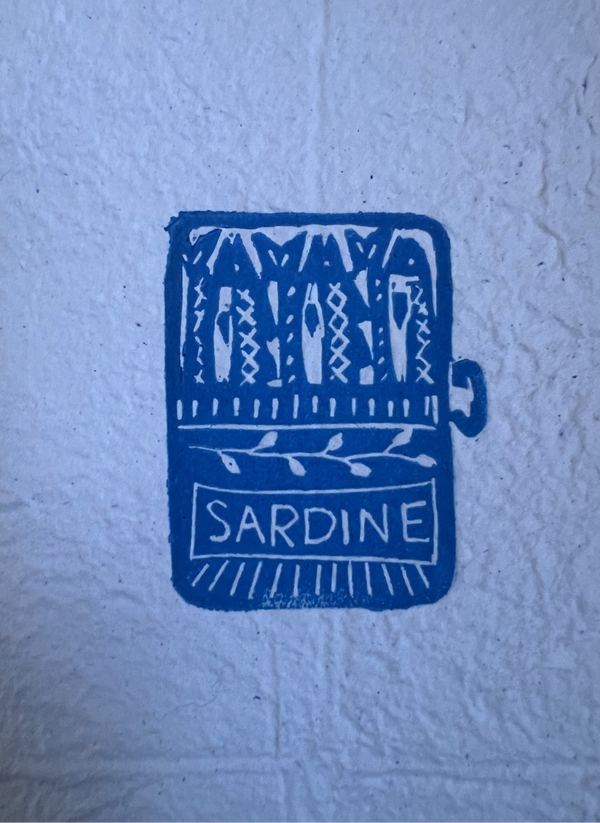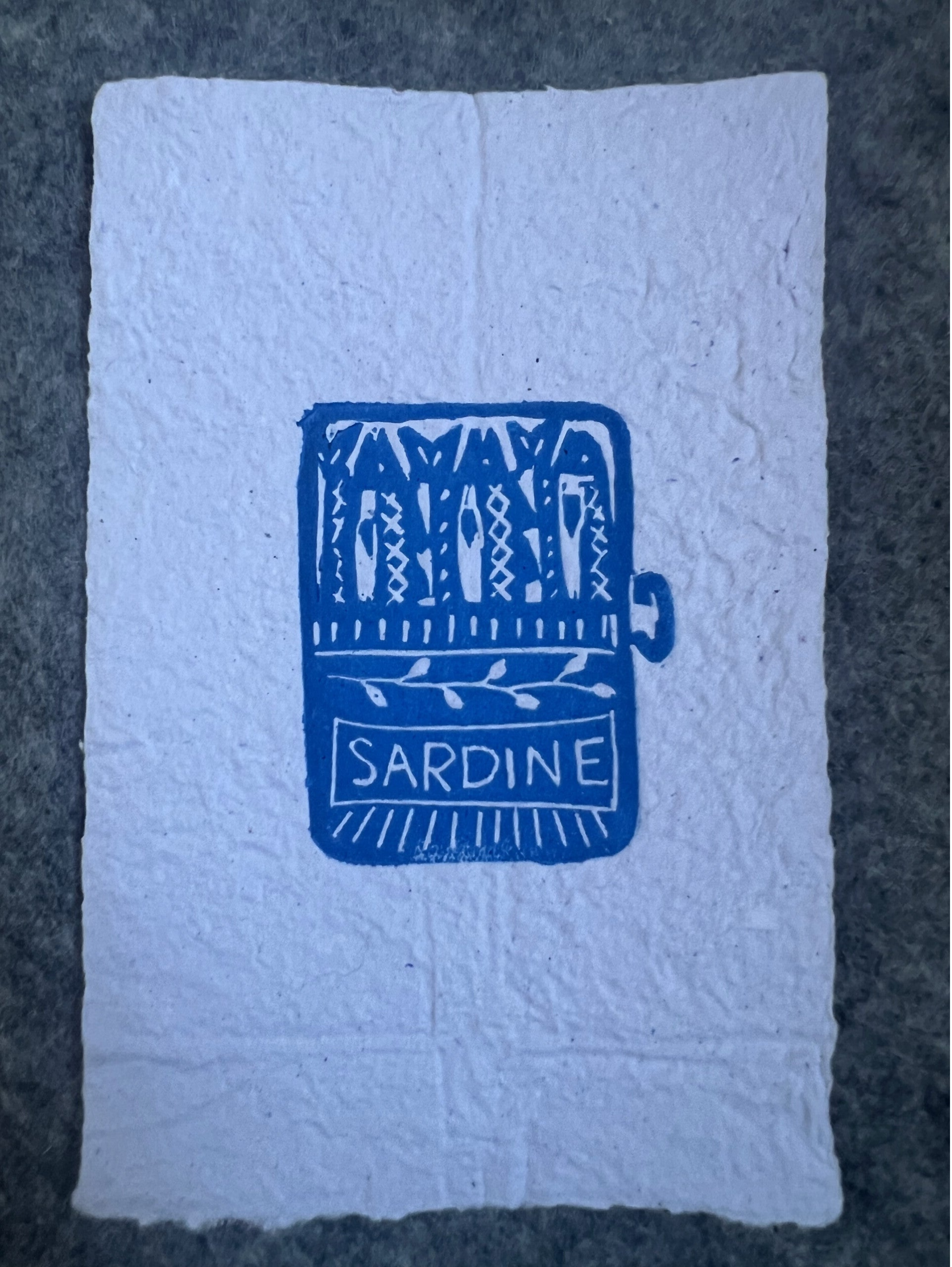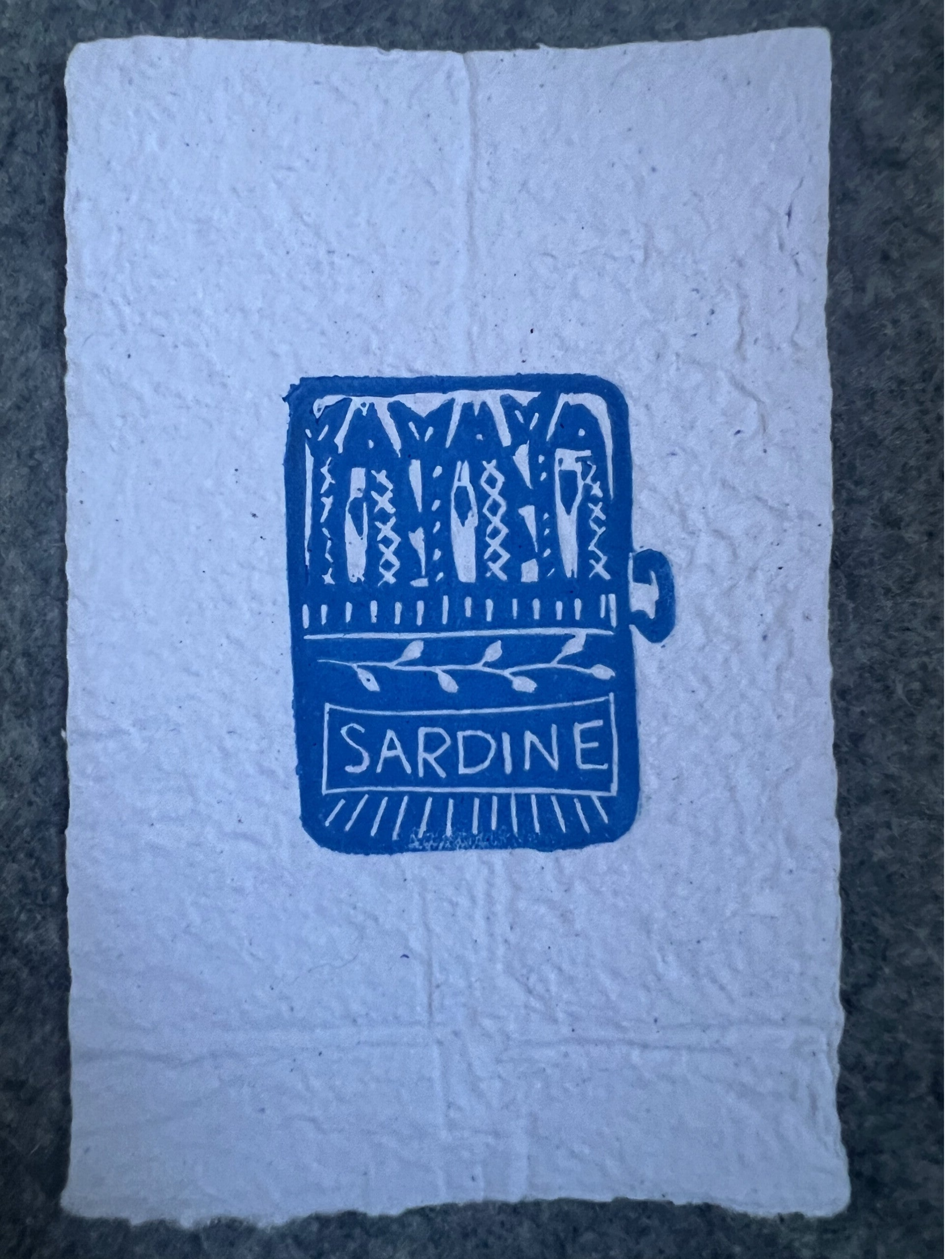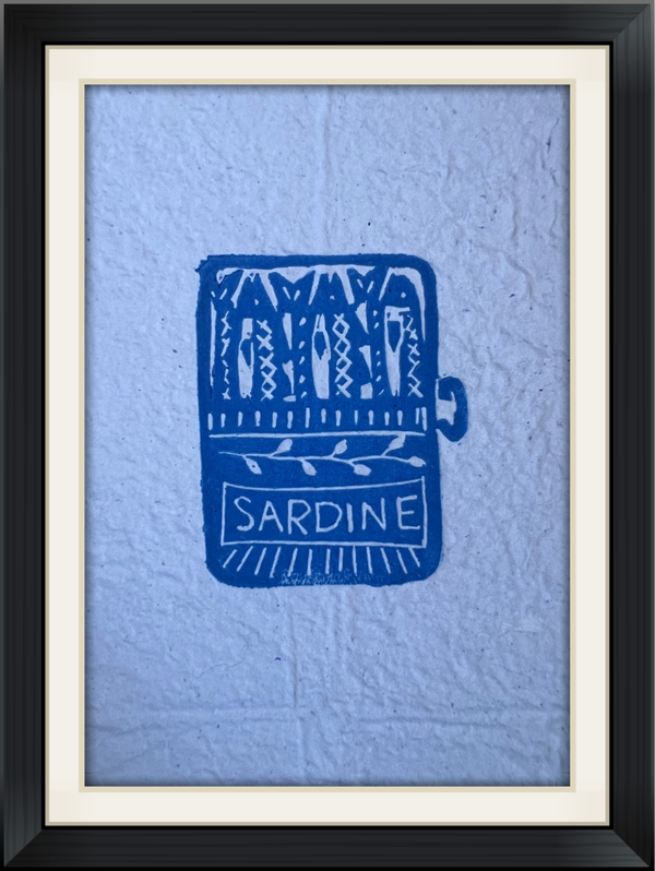 Met de handgesneden en hand afgedrukte linosnede "Sardine". Afgedrukt op door mij handgeschept papier. Let op komt zonder lijst en/of passe partout. Alle linosnedes zijn door mij met de hand gemaakt en met de hand geprint. Handgedrukte linosnedes kunnen van print tot print variëren. Bekijk de foto's goed voor de details en het handgemaakte karakter. Let op dat handgeschept papier niet hetzelfde is als in de winkel gekocht papier. De linosnedes zijn afgdrukt met block printing inkt op waterbasis. Alle lino's worden of zijn met de hand gesigneerd met potlood. Prijzen kunnen variëren het papier dat gebruikt is en de kwaliteit of complexiteit van de druk van de linosnede.