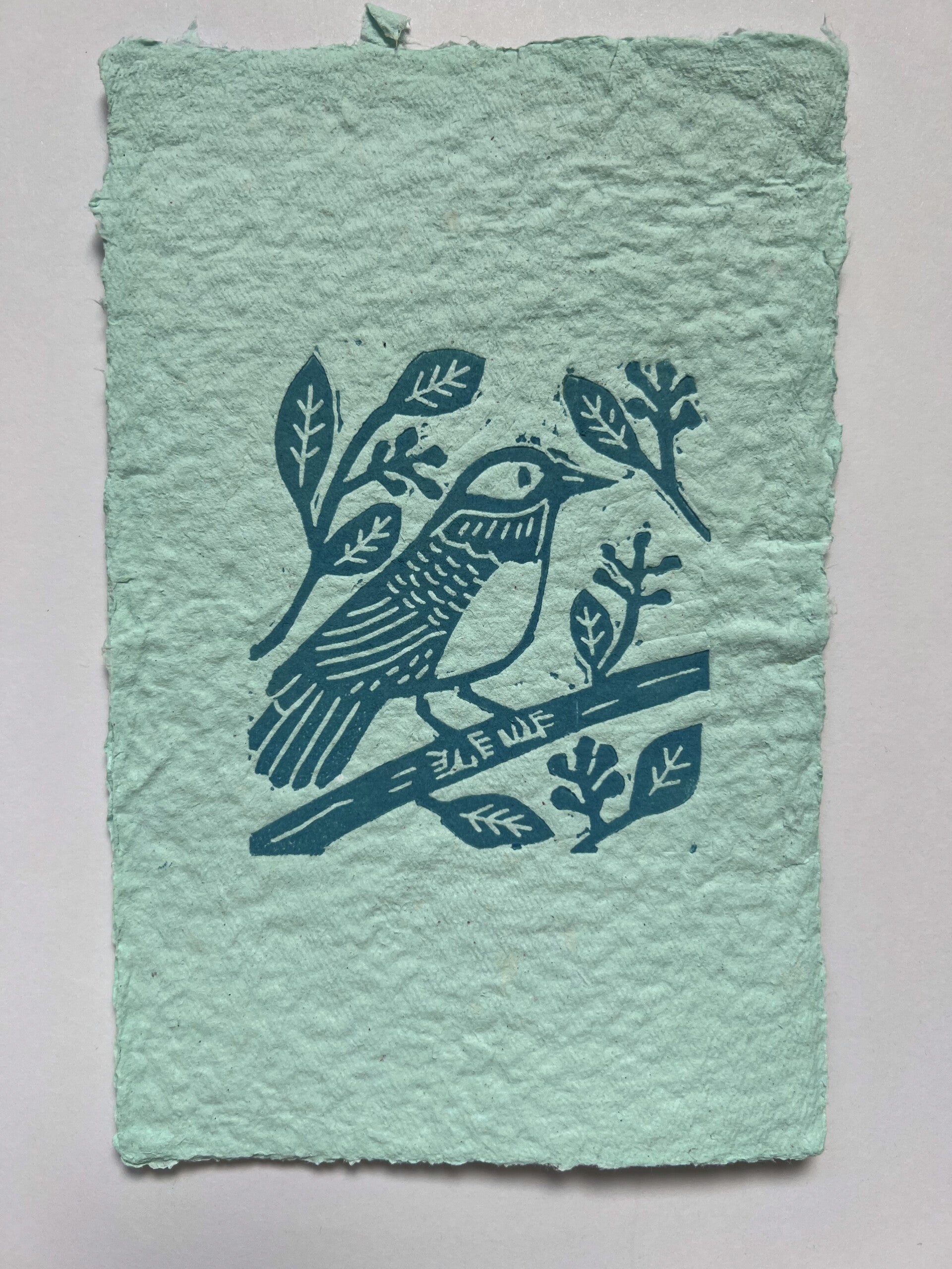 Met de handgesneden en hand afgedrukte linosnede "vogeltje op tak". Afgedrukt op door mij handgeschept papier. Let op komt zonder lijst en/of passe partout. Alle linosnedes zijn door mij met de hand gemaakt en met de hand geprint. Handgedrukte linosnedes kunnen van print tot print variëren. Bekijk de foto's goed voor de details en het handgemaakte karakter. Let op dat handgeschept papier niet hetzelfde is als in de winkel gekocht papier. De linosnedes zijn afgdrukt met block printing inkt op waterbasis. Alle lino's worden of zijn met de hand gesigneerd met potlood. Prijzen kunnen variëren het papier dat gebruikt is en de kwaliteit of complexiteit van de druk van de linosnede.