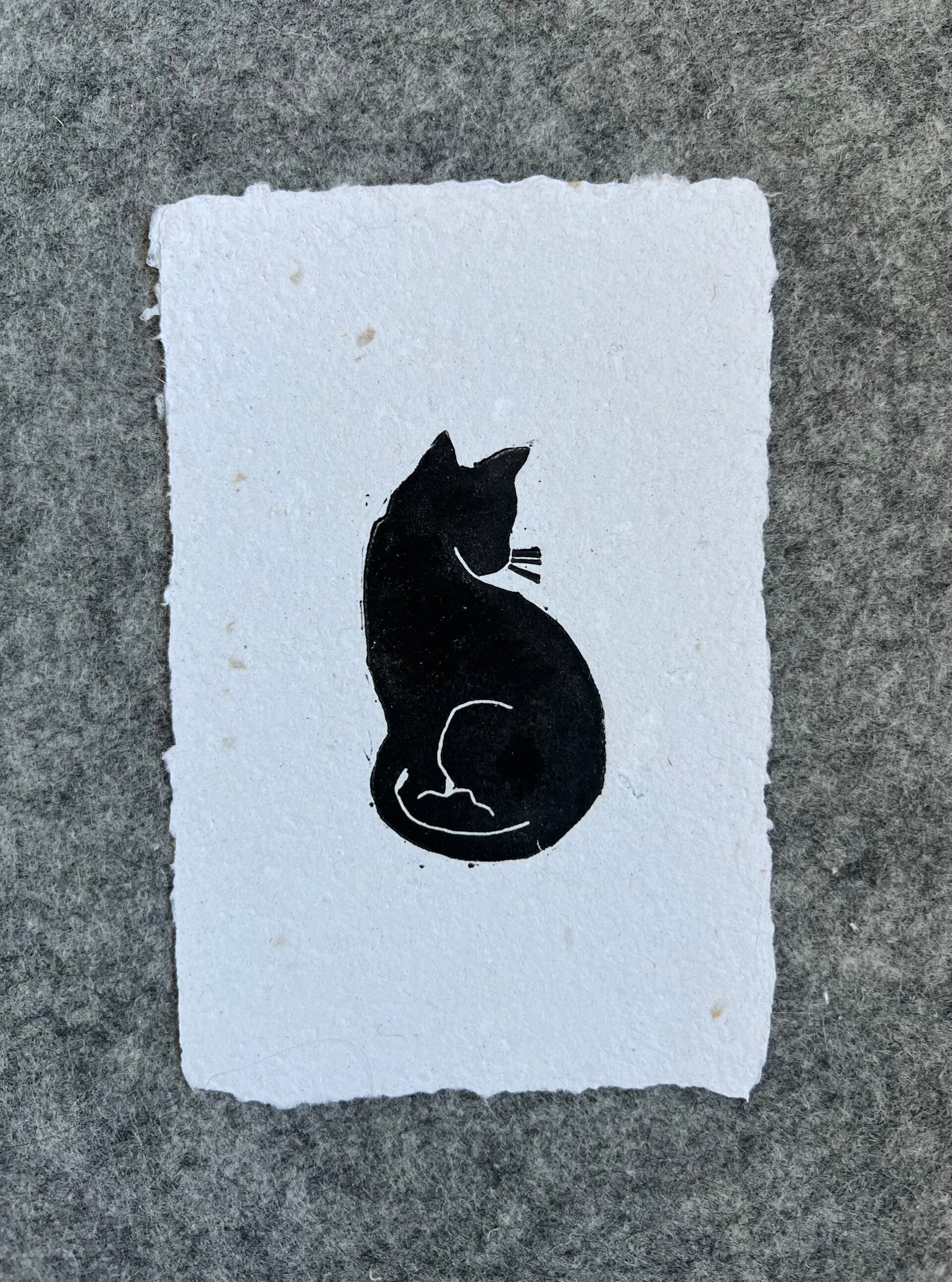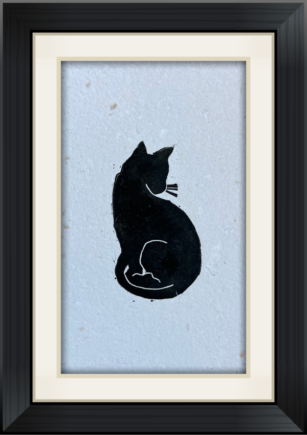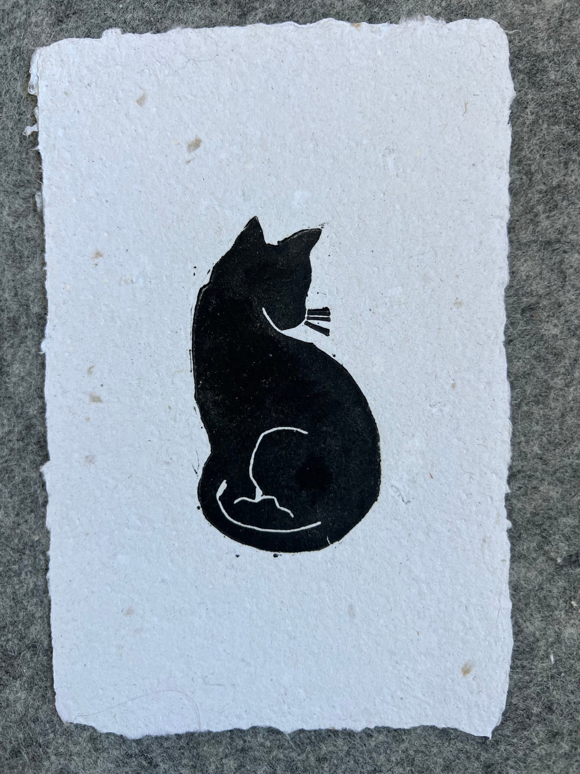 Linoprint “kat” op handgeschept papier
